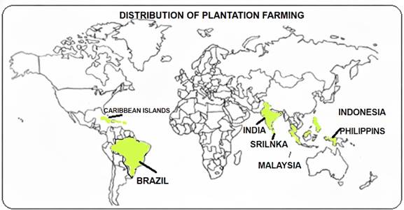9. Regions – Plantation agriculture is practiced in Malaysia, India, Sri Lanka, Caribbean Islands, Brazil, Indonesia, Philippines, Thailand, Vietnam, etc.