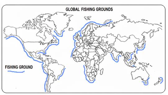 Where warm and cold ocean currents meet, plankton develops in large quantities. Such regions become major fishing grounds and centres of commercial fishing. Rivers flowing into seas bring fresh water and nitrogen-rich materials, further increasing fish production.