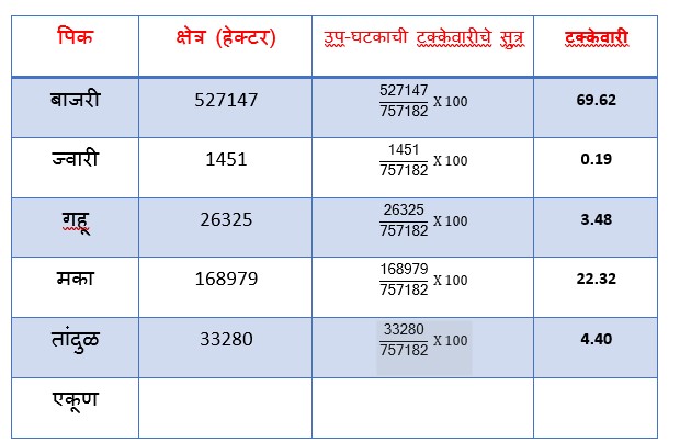 प्रश्न 3) खाली विदेत विविध पिकांचे पिकाखालील क्षेत्र दर्शवीले आहे विभाजीत आलेख काढा. विश्लेषण करा