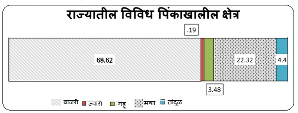 प्रस्तृत विदेत बाजरी पिकाखालील क्षेत्र सर्वात जास्त असून, त्या खालोखाल मका पिकाखालील क्षेत्र आहे. गहू, तांदुळ व त्यानंतर ज्वारी पिकक्षेत्र आहे.