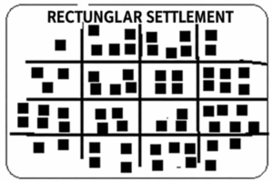 In a rectangular settlement, houses are built in rows or straight lines. The roads are straight and parallel to each other. In modern times, such a pattern is considered while developing planned cities.